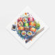 A cute cartoon of a plate of sushi rolls, soy sauce and chopsticks. These napkins are super cute for a Sushi themed birthday party.