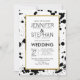Des plaquettes d'encre noir et blanc modernes, élégantes et simples et des contours d'or imitation imprimés, des invitations de mariage. Ce design classique et sophistiqué convient parfaitement au couple marié branché et élégant. Personnalisez-vous avec votre propre message sur le devant ainsi qu'un monogramme customisé sur le dos. Toute la conception d'impression photo.