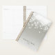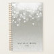 Chic planner with a gold spine features classic black lettering on a silvery grey background adorned with a burst of white bokeh lights at the top. Personalize with two lines of custom text, making this planner a perfect choice for businesses, appointments or daily tasks.