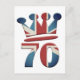 Platinum Jubilee Queen Elizabeth 70 years celebrations, Postcard with Union Jack Number 70 and a crown on top of it.