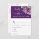 Carte RSVP de mariage avec options de repas modifiables et décorée d'un bouquet de fleurs violettes. Cette aquarelle à motifs floraux et feuillage présente une typographie manuscrite, des points de confettis violet et or, des bourgeons et des fleurs avec des feuilles et des feuillages gris vert. Parcourez mon magasin pour trouver une carte de réponse alternative, un rsvp en ligne et des articles correspondants dans la collection Plush Purple Floral.