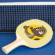 Ping Pong Paddle with illustration of head of platypus in yellow circle,  cute Australian wild animal design for kids by Maxi Harmony