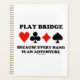 Es-tu un passionné de bridge player ? Laissez votre pont tordu / dupliquer côté pont brillant avec ce planificateur avec les costumes de quatre cartes ainsi que le conseil de pont suivant : "Jouer pont parce que chaque main est une aventure". Pont mémorable disant planificateur pour tout joueur de pont qui pense que chaque main de pont est une aventure en soi.
