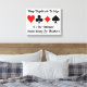 Duplicate bridge players will enjoy this duplicate bridge advice / saying wrapped canvas featuring the four card suits along with the following bridge attitude remark: "Play Duplicate Bridge - It's The Ultimate Social Game For Thinkers". No need to be a bridge teacher to enjoy! Memorable wrapped canvas for any duplicate bridge club.