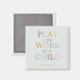 A print featuring the quote "Play is the Work of the Child" by Maria Montessori.
