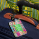 Pleasantly surprised at the quality of the luggage tag. It was exactly as shown and my daughter will be pleased. The address label on the back of the luggage tag was neat and clear.