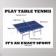 Table tennis players with a sense of humour will enjoy this poster featuring the exact dimensions of a table tennis table along with the following saying: "Play Table Tennis It's An Exact Sport".