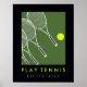 A nice wall-decor idea for a tennis player, featuring a graphic design of rackets and a yellow ball with the words: play tennis, and feel good...