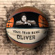 Player Name Number Wood Keepsake Photo Basketball. Custom photo and two basketballs on each side and basketball court wood floor. Personalize it with the player's name, number, team name and photo. A great personalized basketball keepsake to remember the favourite sport.