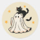 Playful Black Cat on Ghost's Head Halloween Classic Round Sticker