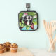 Playful Boston Terrier Puppy with Green Bow Pot Holder