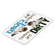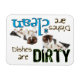 This 3" x 4" magnet features a young cat laying down and playfully reaching for text that reads: "Dishes are Dirty". Turn this magnet up-side-down and the same adorable cat is featured with the text: "Dishes are Clean". This unique dishwasher magnet makes a great gift for that cat lover in your life! This design is copyright protected and may not be copied or redistributed.