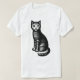 This design features a playful, wide-eyed cat rendered in a charming woodcut style. The bold black-and-white illustration highlights handcrafted linework, giving the artwork a warm, vintage feel. Its friendly expression and classic printmaking aesthetic make it a perfect choice for cat lovers, art enthusiasts, or anyone who enjoys unique, eye-catching graphic tees. A simple yet expressive design that adds character to any casual outfit.