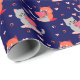 Playful Cat Wrapping Paper – Navy Blue Hearts
