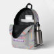 At the heart of this backpack’s design is customization. The front pocket showcases two prominent coloured pencils in pink and purple, framing a space for your personalized touch. Here, you can add your name or a unique message in bold white letters against a customizable colour background, making it truly yours.