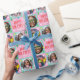 Get into the festive spirit with this cute personalized wrapping paper! A playful design featuring three of your favorite photos. The background is filled with stars, snowflakes, hearts, and Christmas trees, all adding to the cheerful vibe. The template incorporates trendy typography with the phrase “Happy Holidays,” along with your name, but all of the text can be customized. A fun, modern retro style that's perfect for Gen Z, teens, and young adults. Printed colors: pink, green, red, yellow, blue and white — or customize the colors with the design tool. Available with a matte or glossy finish.