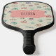 This playful personalized pickleball paddle features doodles of simple hearts, dots, and wavy lines painted with soft pastel watercolors in blush pink, mint green, lavender, and pale yellow.