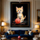 A joyful and mischievous kitten, centered against a deep black background, gazing straight at you as if inviting play. Warm lighting, soft details, and a charming ball of yarn create a cozy, peaceful mood that brings life and happiness into any space. Designed to work beautifully as wall art and art prints, this illustration also adapts naturally to everyday items such as mugs, cups, and home décor, making it easy to enjoy this playful moment throughout daily life. An elegant choice for cat lovers and modern interiors.