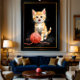 A joyful and mischievous kitten, centered against a deep black background, gazing straight at you as if inviting play. Warm lighting, soft details, and a charming ball of yarn create a cozy, peaceful mood that brings life and happiness into any space. Designed to work beautifully as wall art and art prints, this illustration also adapts naturally to everyday items such as mugs, cups, and home décor, making it easy to enjoy this playful moment throughout daily life. An elegant choice for cat lovers and modern interiors.