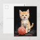 Playful Kitten Cat with Yarn Watercolor Print Postcard