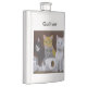 An acrylic painting of four playful kittens getting into trouble adorns this fun customizable flask!