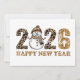 Celebrate the New Year with a vibrant design featuring bold leopard print, gold glitter accents, and a cheerful snowman. This festive layout blends whimsy and sparkle for a joyful start to the season. The reverse side includes the greeting, "Pop, sparkle, cheer! Wishing you a wild and wonderful New Year filled with glitter, giggles, and cozy moments. Let the countdown begin!" and the sender’s name, perfect for sharing warmth and personality.