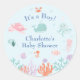 Playful Ocean Friends Blue Its A Boy Baby Shower Classic Round Sticker