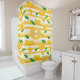 This vibrant seamless pattern shower curtain features stylized orange slices and fresh green leaves set against bold alternating white and yellow horizontal stripes. Scattered orange and yellow dots add a fun, playful touch, making the design feel sunny, cheerful, and full of zest. Perfect for summer themes, tropical vibes, and fruity, energetic aesthetics.