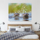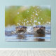 Two river otters burst through the surface with perfect comedic timing, whiskers dripping and eyes bright with mischief as water explodes around them in sparkling droplets. Sunlight dances across wet fur and ripples, capturing pure animal joy and playful energy against a soft natural backdrop. Ideal for animal lovers’ bedrooms, kids’ rooms, bathrooms, home offices, nature-themed spaces, or as heartwarming gifts for otter fans, wildlife enthusiasts, teachers, kids, or anyone who smiles at adorable wild critters.