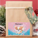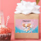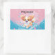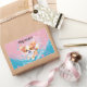 An adorable kawaii papillon dog illustration in pink and blue, featuring a playful papillon pup frolicking in splashes of fun. Personalize with a name.