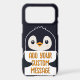 Playful penguin with a sign for your message: Add your custom message