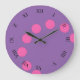 A funny and different design based on just one huge dot covering the entire clock face, and a circle of twelve smaller pink dots indicating the hours, and that seems to be falling off the clock. The twelve pink dots used to highlight the Roman digits...