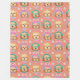 A delightful pattern featuring adorable poodle faces, each wearing festive accessories like bunny ears, sunglasses, and scarves, set against a peachy background with Easter eggs scattered around. The cute and colourful design brings a cheerful, springtime feel, perfect for celebrating Easter.
