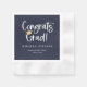 Congrats Grad! Playful white script with golden graduation cap accent, graduation party napkins. Features, navy blue colour background.