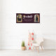 Playful white script with gold colour graduation cap accent, arch frame 2 photo graduation banner. Features, dark purple colour background.