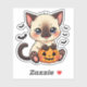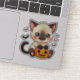 Playful Siamese kitten sticker in kawaii chibi Halloween style, great for cat lovers and festive crafts.