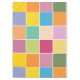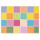 Colourful chequered tablecloth designed with various shades of yellows, orange, greens, lavender and blue.