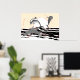 Playful Stylized Ocean Jumping Dolphins At Sunrise Poster