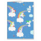 Vector drawn baby unicorns frolic among rainbows and butterflies in this whimsical design.