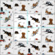 Sew your own dog beds, dog accessories, whimsical dog lover decor or fun clothing with unique dog themed fabric. This design by Andie incorporates her hand drawn artwork of cute CKCS spaniel dogs doing funny things in fanciful collage that would appeal to any dog lover.