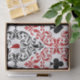 Playing card suits inside intricate scroll work designs all on a white background. Perfect for decoupage, crafts, or gift wrapping.