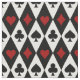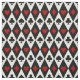 Red hearts and diamonds and black clubs and spades on a background of white and black diamond shapes.