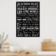 I was really excited about this poster. It arrived on time without an issue. When I opened it.. I was soooo dissapointed to see that what I THOUGHT I orderd was incorrect. Apparently, by PAYING for a bigger piece of canvas you get LESS lettering. It does not make much sense to me, so I am not ordering from this site again. After sending an email to customer service like they recommend you do, and not getting a response in 2 weeks, I called them myslef. I had a great rep who really did help me. now lets see if they can refund my purchase a fast as they took my payment. great quality.... however not quite what it was supposed to be..