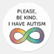 Please be kind, I have Autism | Neurodiversity Classic Round Sticker