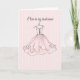 invite your best friends to be bridesmaids with this pretty feminine card featuring a flouncy pink gown!