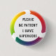 Grab their attention with this colorful badge. Get your message across that you or a loved one has aspergers. Text is customizable. Available in different sizes.