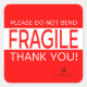 Let BOTH postal workers and consumers know that your flat paper products or documents are fragile - so place this square "do not bend" square sticker on the outside of your envelope or rigid mailer. It's a must-have in your arsenal of shipping supplies, whether you're a reseller, entrepreneur, or small business owner. Excellent for shipping lithographs, stamp collection panels, and plastic cards.