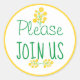 Please Join Us Yellow Flower Party Classic Round Sticker