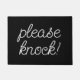 Please knock before coming in black script doormat for entrance. Handy mat for new home, business, store, shop, salon, restaurant, office, club, hotel, wedding etc. Black and white design. Medium and large size entry rugs.