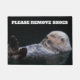Decorative doormat that features the photo image of a cute, bathing Sea Otter reminding guests to please remove their shoes. Use indoors or in covered entryways.